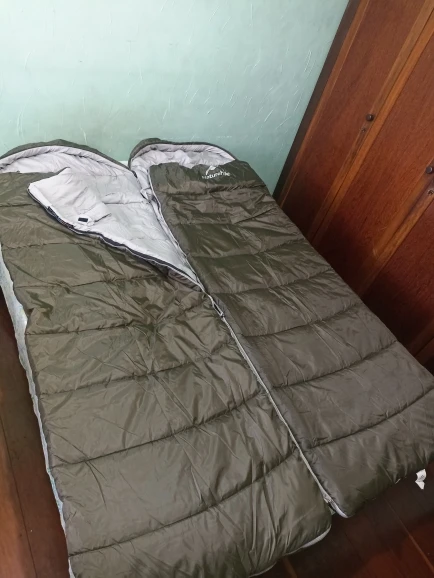 Very good sleeping bag. Size great for sleeping. Compact when saved. Good quality material. It remains to test in the cold.